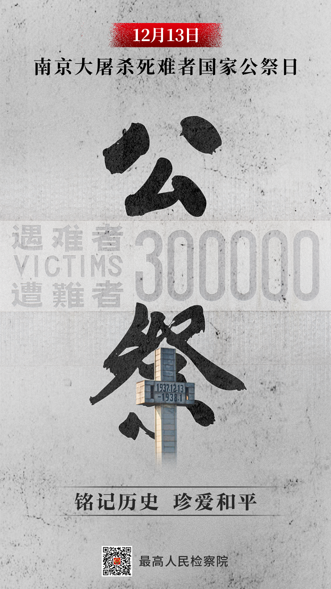 今天,第10个南京大屠杀死难者国家公祭日,铭记历史,珍爱和平!