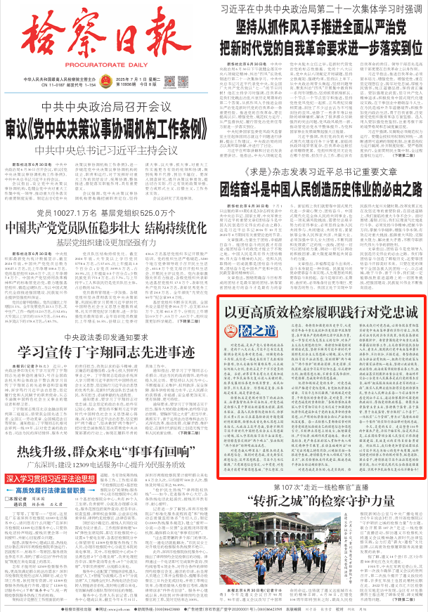 今天,是党的生日。走过整整104年的中国共产党,历经千锤百炼,恰是风华正茂,正在团结带领全国人民坚定不移朝着强国建设、民族复兴的宏伟目标奋勇前进。新征程上,我们要更加紧密地团结在以习近平同志为核心的党中央周围,始终坚持党对检察工作的绝对领导,锐意进取、埋头苦干,持续推进习近平法治思想的检察实践,为以中国式现代化全面推进强国建设、实现中华民族伟大复兴而不懈奋斗!