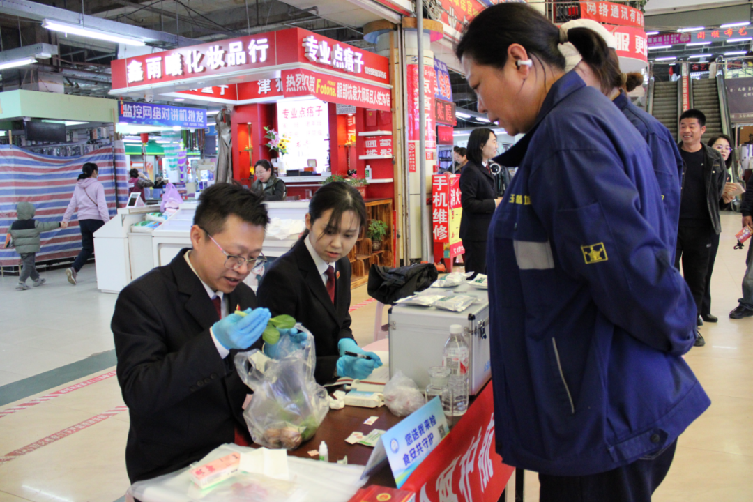 “您的青菜样本检测完成,农药残留未超标,可以放心食用!”在食品安全检台,检察官带来的检测设备吸引了过往群众的目光,部分市民拿来刚刚购买的蔬菜、肉类等交给检察官检测。检察官一边与技术人员操作检测仪器,一边向围观群众讲解检测原理,宣传桌化身“流动实验室”。同时,检察官结合亚硝酸盐超标、非法添加色素等真实案例,提示群众提高对“三无”食品的警惕意识,“快检+普法”同步进行。