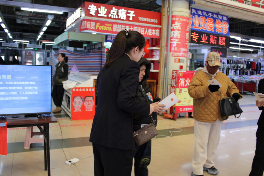 活动现场,检察官用电视展播公益诉讼、消费者权益保护等相关法律知识,结合案例讲解公益诉讼检察职能,公示检察机关维权通道,发放宣传单并解答群众疑问。检察官告诉大家,如果生活中遇到食品药品安全、生态环境等与生活息息相关的问题,可以向检察机关提供线索,检察机关将发挥公益诉讼检察职能,守护大家的美好生活。