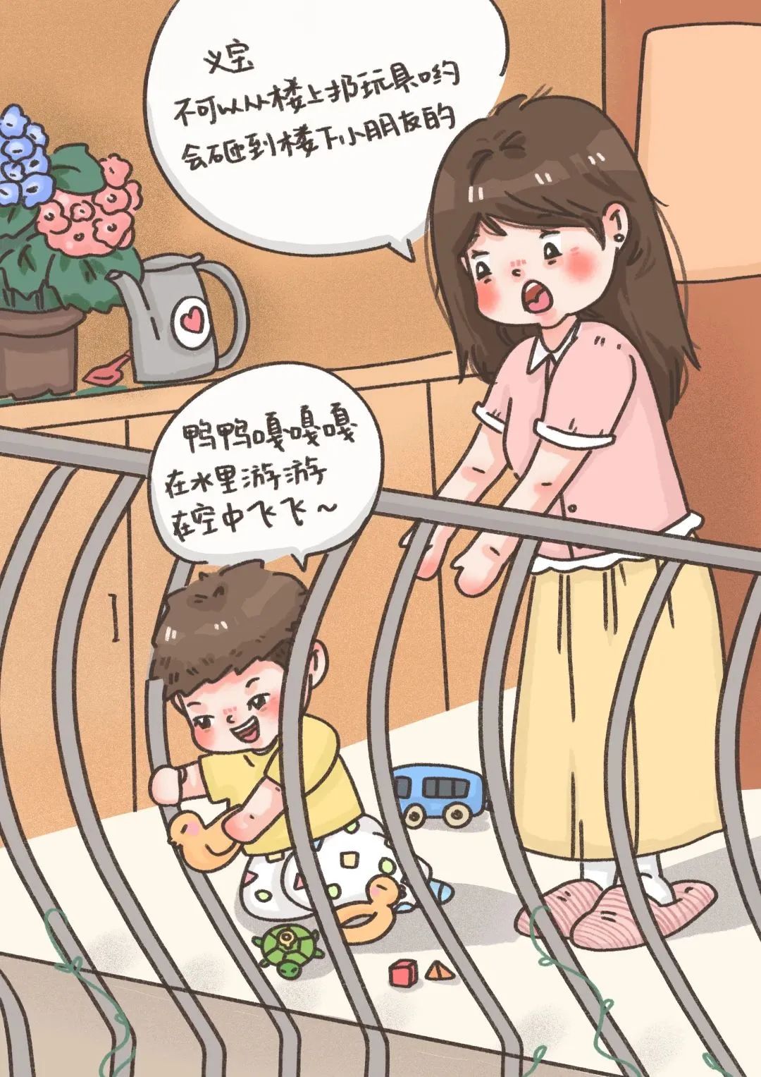 高空抛物可能会砸伤路人,家长应让孩子清楚高空抛物的严重性和危害性。